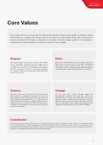 and outside the company. We always strive to do better and sustainable things while respecting to