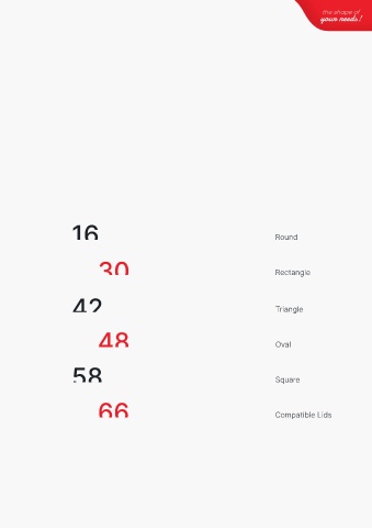 16 Round 30 Rectangle 42 Triangle 48 Oval 58 Square 66 Compatible Lids