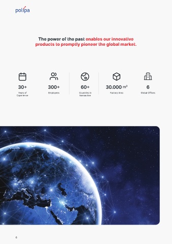 The power of the past enables our innovative products to promptly pioneer the global market. 6